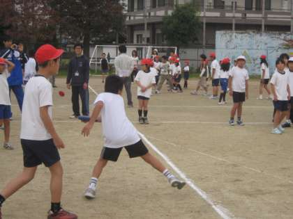 全校児童を6つの縦割りグループにわけてフリスビーをボール代わりにしてドッジボール大会を児童会の主催で行いました。雨を心配しましたがなんとかもちました。開会式の後,全部で3試合を行いました。フリスビーが舞いながら子ども達の歓声も続いていました。高学年の児童がとったフリスビーを低学年の子ども達にわたす様子もみられほのぼのとした雰囲気の中でゲームを楽しんでいました。さすが横大路の子です。みんなで楽しもうとしていました。