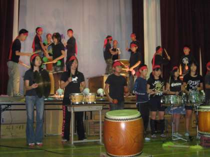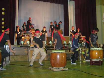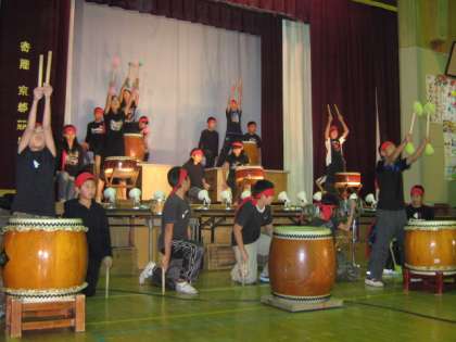 和太鼓に挑戦しました。龍神太鼓を全員で演奏しました。後半は和太鼓と打楽器とのアンサンブル。迫力のある音に会場中,聞き入っていました。最後は大きな拍手をもらいました。