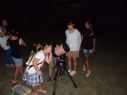 今年も,天体望遠鏡を使って,月の表面の様子を観察しました。「おっ。すごい。」思わず上がる歓声に,順番を並んでいる人も,どんなんやろうかと期待されていました。順番が来て,ファイダーを覗き込んだ人は皆,満足の声を上げていました。