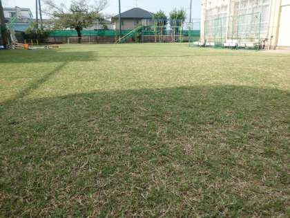 学校では,来週から芽生え始めた芝を養生することにいたします。少なくとも2週間は強く踏んで根を痛めてしまうことがないように,運動場を閉鎖することにします。