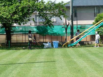 本日も地域の皆様PTAの皆様のご協力で,芝を刈っていただきました。