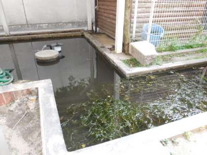 地域の,高須さん・田渕さんが,学校の池をきれいにしてくださいました。
