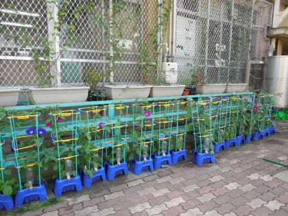 学校の玄関や芝生運動場には,今学校で育てている花や子ども達の育てている植物が大きく育ち,葉っぱも花もいきいきとしています。毎日暑い日が続きますがほっとする場所が学校にはたくさんあります。