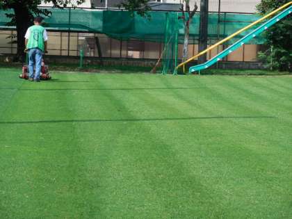 暑い中,地域の皆様やPTAの方が,芝を刈ったり草をひいたりしてくださいました。