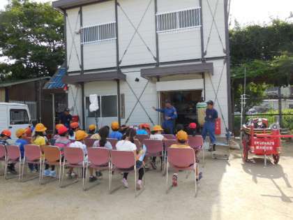 4年生が第二運動場ある消防器具庫の見学をしました。消防団のみなさんに大変ていねいに説明していただきました。私たちの地域にこんなに素晴らしい設備が整っていることを知って,子ども達からの質問が次々出ていました。今後の学習に生かしていきたいと思います。貴重なお時間ありがとうございました。