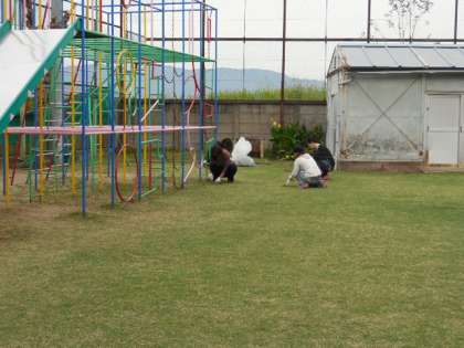 本日芝刈りがありました。地域の皆様PTAの皆様の協力のお蔭できれいになりました。