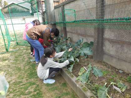 今日は5・6年生で一緒に育てたブロッコリーを収獲しました。自分達の収穫したブロッコリーと,徳島から届いたブロッコリーの食べ比べもしました。とてもおいしかったです。徳島から来ていただいた田中さんには今までご指導いただきありがとうございました。