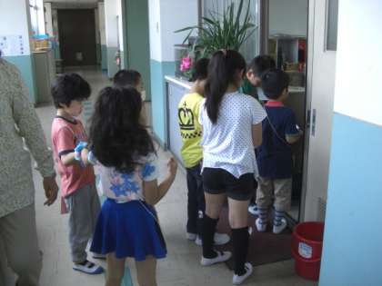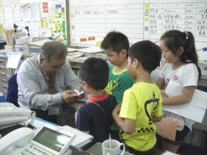 子どもたちは,各部屋で出会った先生にしっかりとあいさつをして,名刺交換ができるとにこにこ顔で「失礼しました」とうれしそうな声を出していました。