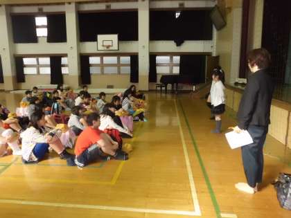 6年生が修学旅行に、全員元気に出発しました。天気は、快晴で絶好の旅行日和です。