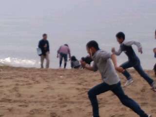 ホテルの近くの海岸で今,遊んでいます。雨もやみました。よかったです。