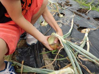 「横大路の里」農園で栽培したタマネギの収穫を行いました。