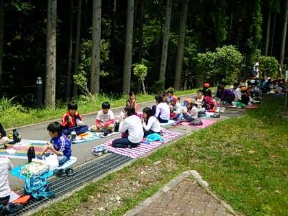 入所式の後、宿泊するロッジに入りました。荷物整理をした後、12時より班ごとに昼食をとりました。