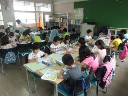 土曜学習がありました。低学年を中心に、たくさんの子どもたちが参加してくれました。参加者は、家からもってきた課題やプリントなどに、自分で計画をたてて熱心に取り組んでいました。