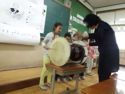 その後,一人ずつチャンゴをたたかせてもらいました。