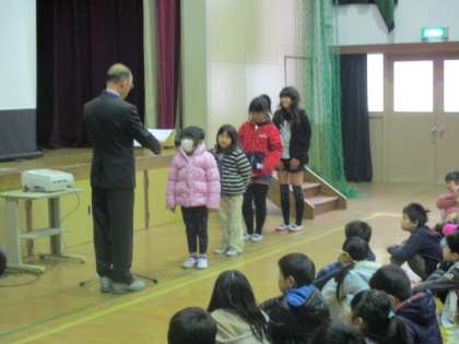2日に3月の朝会がありました。校長先生からは、3月にちなんだお話やスポーツマンシップについてのお話がありました。最後に、絵と習字の表彰がありました。