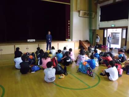 はじめに司会役の進行のもと,はじめのあいさつや校長先生の言葉,担任の先生からの諸注意を聞きました。