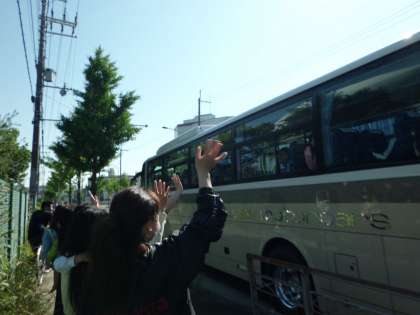 その後,見送りに来られた保護者の方に見守られながら無事時間通りに出発しました。