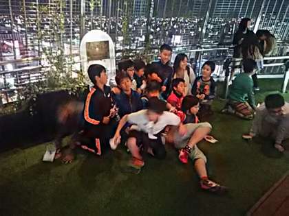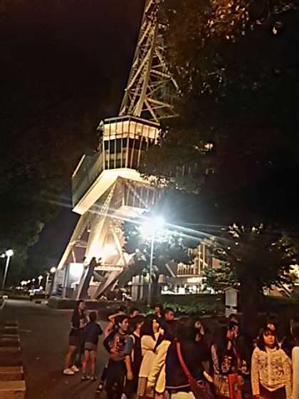 夕食の後、テレビ塔に来ました。展望室での夜景に、みんなのテンションは最高に。帰りは、全員がスカイウォーク(外側の階段)を降りました。スリル満点でした