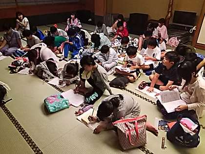 お風呂から上がり、今日の振り返りをしました。めあてを達成できたグループが多かったです