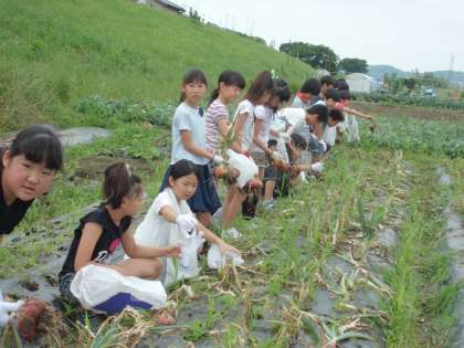 雨上がりの畑に玉ねぎぬきに行きました。雨上がりでしたので,風が涼しく玉ねぎもとてもぬきやすかったです。大きな玉ねぎをいただきました。楽しい体験をさせていただき,本当にありがとうございました。