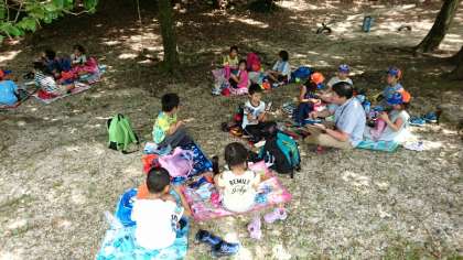 お昼ご飯はグループで思い思いのところに座って食べました。