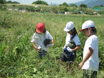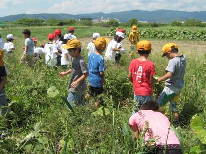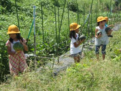 今日,1・2年生が畑にいってできるだけ大きいかぼちゃをさがして収穫しました。中には2キロ以上の大きさのかぼちゃもありました。「おもたーい!」といいながらうれしそうな顔をしながら学校へもどりました。このかぼちゃは後日持ってかえる予定です。