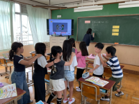 選択種目は,全校児童が綱引きと玉入れに分かれて参加します。