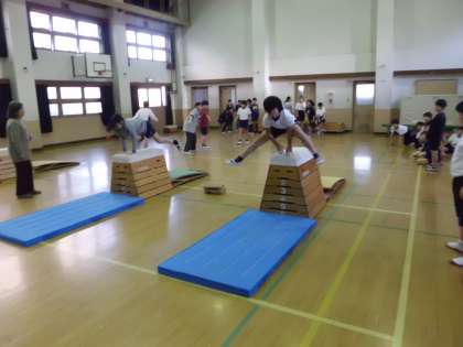 5年生の体育では「とび箱運動」に取り組んでいます。