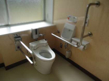 なお,今回の改修工事により和式トイレが全て洋式トイレになりました。また,本館1階のトイレには,車いす対応トイレが設置され,バリアフリーやウォシュレット,手すりを設置するなど,高齢者や身障者にも使いやすく優しいトイレとなっています。