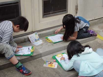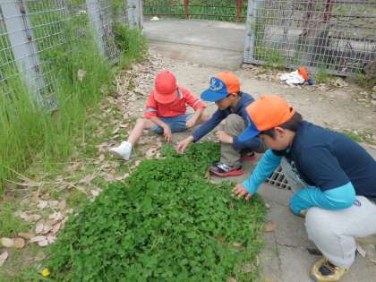 初めての理科の授業で「生き物のすがた」を観察しました。「虫めがね」の使い方を学習し,大喜びでのぞく姿がみられました。