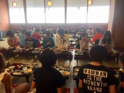 朝6時45分に起床、着替えや部屋の片付けを済ませて、朝食を食べています。