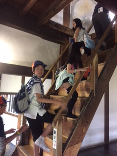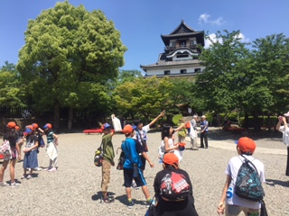 事前に調べていた城の仕組みなどに関心を持ち、見学していました。
