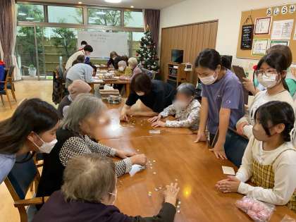 総合的な学習の時間で特別養護老人ホームレーベン横大路さんを訪問しました。職員の方に介護士のお仕事についてのお話を聞いたり、利用者の方と交流をさせていただきました。
