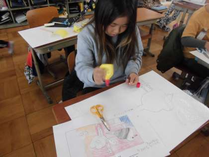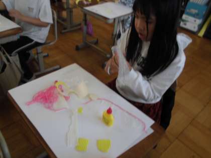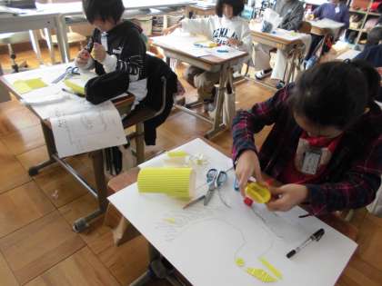 図画工作科では、版画に取り組んでいます。いろいろな材料を使って、版を作っています。みんなのアイディアがとてもおもしろいです!!