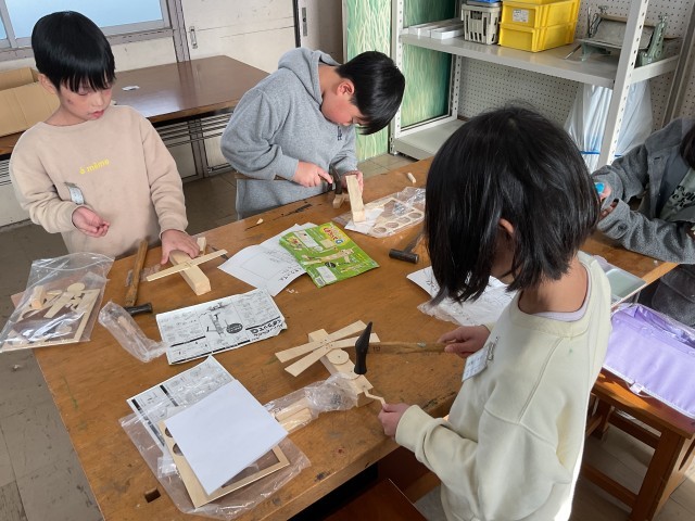 図画工作科では、「トントンどんどんくぎうって」の学習をしています。金づちの使い方に気を付けながら、学習を進めています。それぞれが自分の思いを大事にしながら、取り組んでいるので、どんな作品が出来上がるかとても楽しみです!