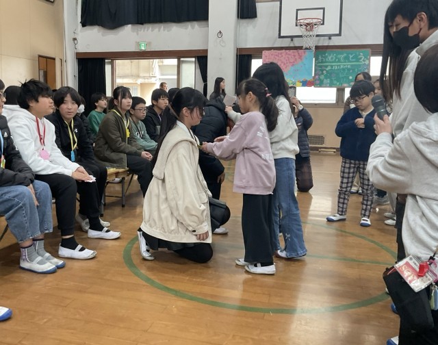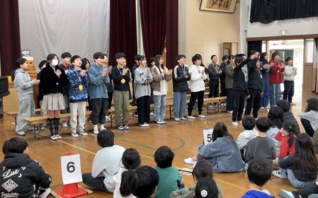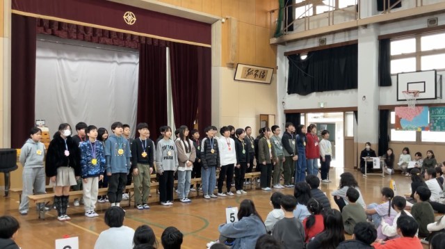 6年生を送る会がありました・1~5年生が作ってくれたメダルとメッセージを受け取り、1~5年生のために歌とエールを送りました。とても心が温まる会になりました。