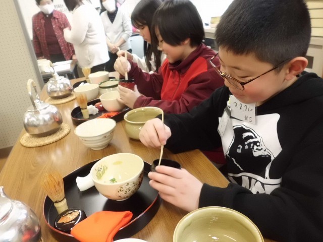 3月6日(金)放課後に、34年生茶道教室の発表会を行いました。これまでに月1回練習してきた茶道の作法を保護者の方に見ていただきました。子どもたちもとても喜んでいました。女性会の方、茶道の先生 丁寧にご指導いただき、ありがとうございました。