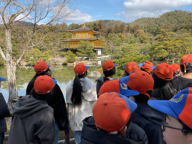 校外学習の午前は、市内めぐりで鹿苑寺金閣、龍安寺、京都御所を回りました。建物のつくりを見たり、昔の人の思いに触れたりして、自分たちなりに考えを深められていました。京都御所で昼食を食べました。お弁当等の準備ありがとうございました。