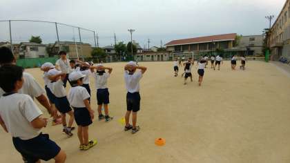 6年生が声をかけ,どうすれば勝てるのかをしっかりと話し合っていました。