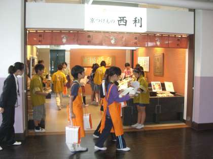3組の2人は,京つけもの西利と井筒八ツ橋本舗の個人客担当として,担任がほとんど手を貸すことなく,しっかり活動しました。「いらっしゃいませ」「ありがとうございます」と,大きくはっきりした声が出ていました。今日の体験は,きっと今後の2人の力となることと思います。