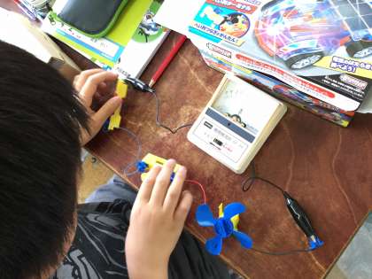 電流の流れる向きを調べる学習を行いました。