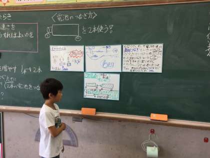 また,電池のつなぎ方もグループで話し合い,考えを深めました。