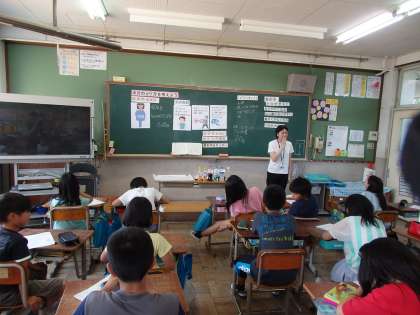 食に関する指導を受けました。今回のテーマは『水分のとり方』です。体内に水分は何パーセント含まれているのか,また水の役割は何なのかを教わりました。これから暑さが厳しくなってきますが,正しく水分補給をし,健康な体づくりをしていってほしいと思います。