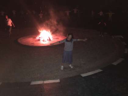 大盛り上がりのキャンプファイヤーでした。皆が盛り上げようとしているのがよく分かりました。キャンプファイヤーの後,お風呂に入り,一日の振り返りを行い,今日の活動を終えました。