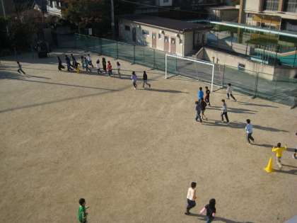 6年生は,毎朝運動場でランニングを続けています。5年生も,6年生の胸を借りて勝負を挑むつもりで自主的に走り始めました。