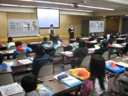 社会見学で京都新聞社(本社)に行きました。新聞記者の方に集合写真を撮ってもらったり,新聞記事を編集しているところや印刷しているところを見せてもらったりしました!