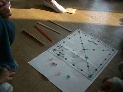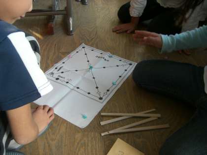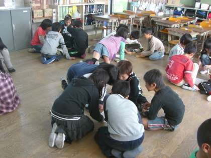 どのマル(こま)を動かすととくするのか作せんを考える3ネンジャー。