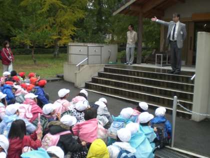 同じ電車に乗って,同じ伏見区内にある「森林総合研究所」へ。まずは所長さんと元気にあいさつ「おはようございます!」