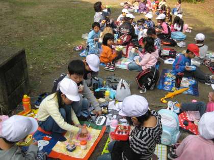 そして,待ってました!お弁当の時間です。グループごとにかたまって食べます。