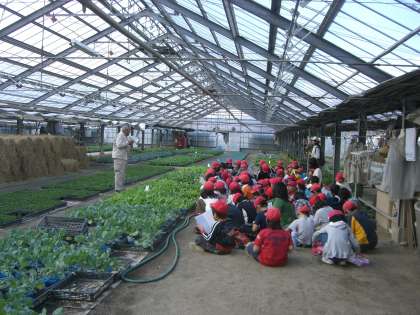 育苗園ではたらいておられる方々に元気にあいさつをして、